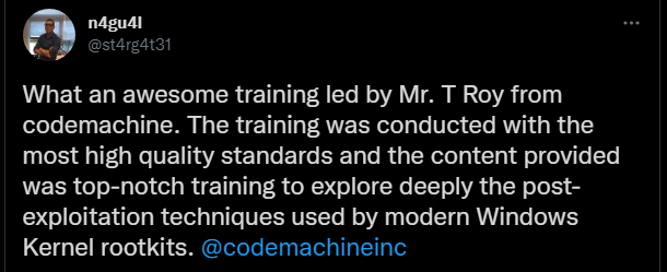 CodeMachine has been involved in Windows internals, development, and debugging since the inception of Windows NT in 1992 and has delivered related courses all over the world for more than 15 years. CodeMachine instructors bring unmatched historical perspective to design and architectural questions that come up during the training. Moreover, CodeMachine instructors actively work on Windows security software on a regular basis enabling them to convey real-life experiences to attendees. This depth of technical knowledge and architectural insights sets CodeMachine courses apart from other training providers.